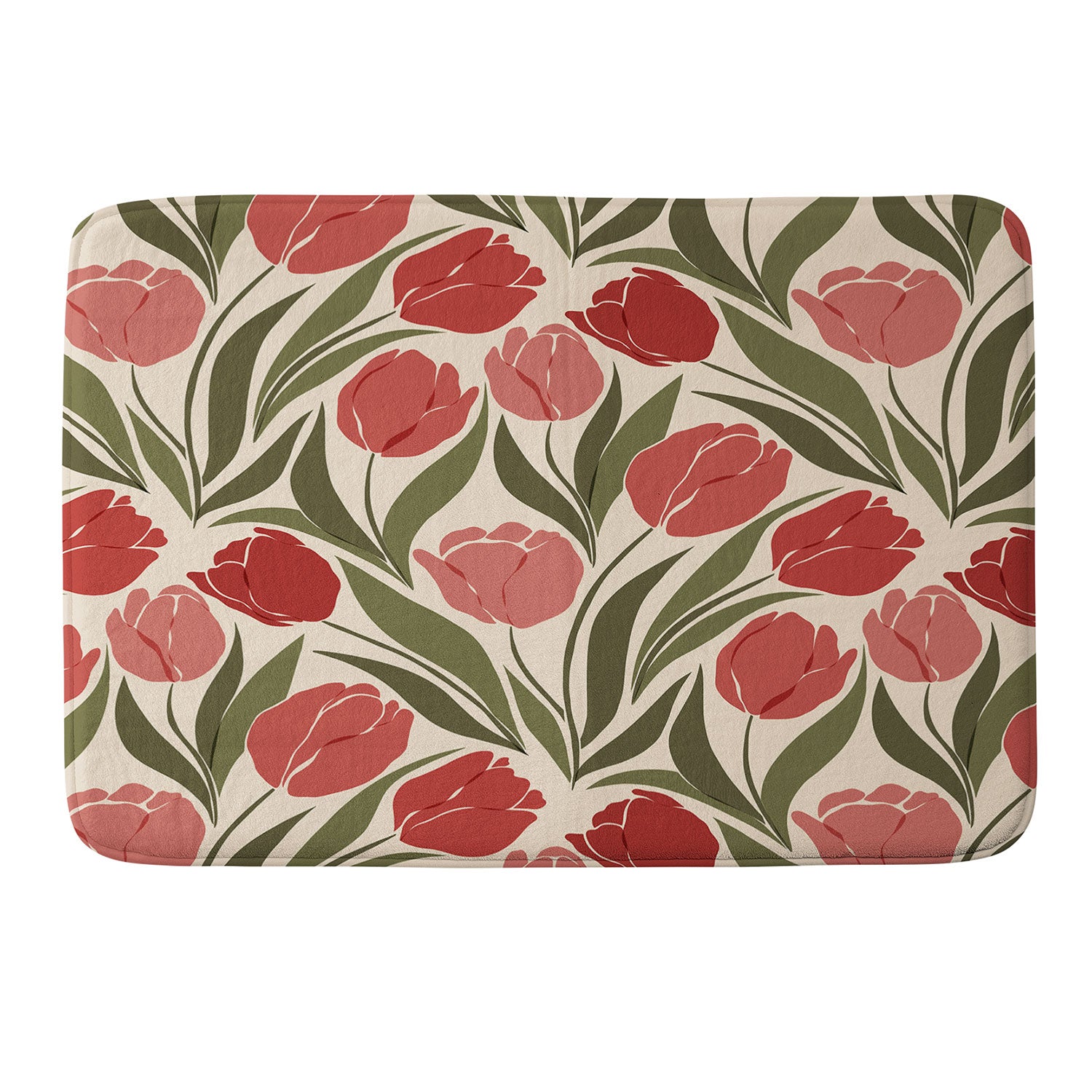 Cuss Yeah Designs Red Tulip Field Memory Foam Bath Mat