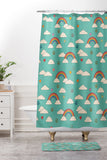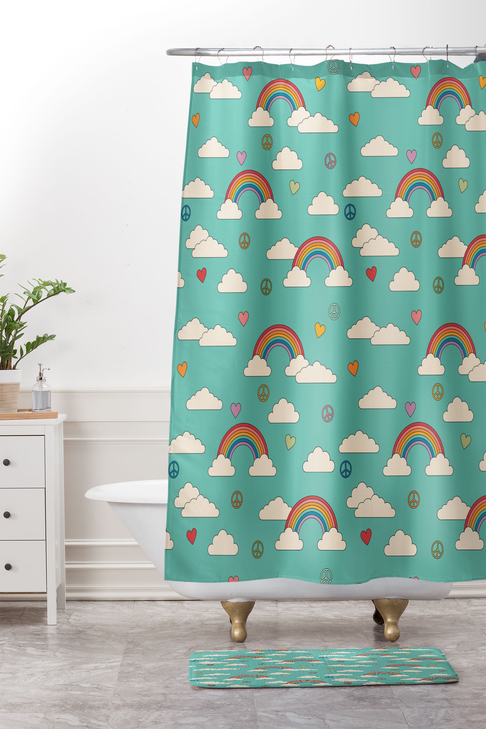 Cuss Yeah Designs Retro Hearts and Rainbows Shower Curtain And Mat