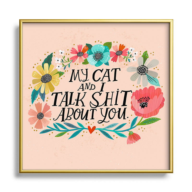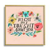 CynthiaF My Cat and I Talk Shit About You Square Metal Framed Art Print