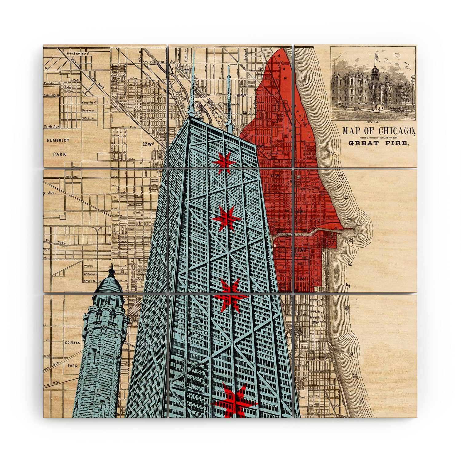 DarkIslandCity John Hancock Center With Great Fire Map Wood Wall Mural