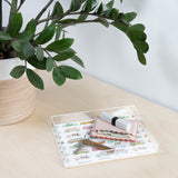 Tray chic. The Deny Designs acrylic trays come in a small and medium-size to accommodate all your countertop organizational needs. Featuring designs from our curated selection on the bottom panel, the acrylic trays can adapt to whatever decor style you love and the see-through side panels give them a modern flair. The medium-sized tray even comes with handles, allowing you to take it around the house for nail supplies or, dare we say, breakfast in bed! And the best part? Every purchase pays the artist who designed it—supporting creativity worldwide.