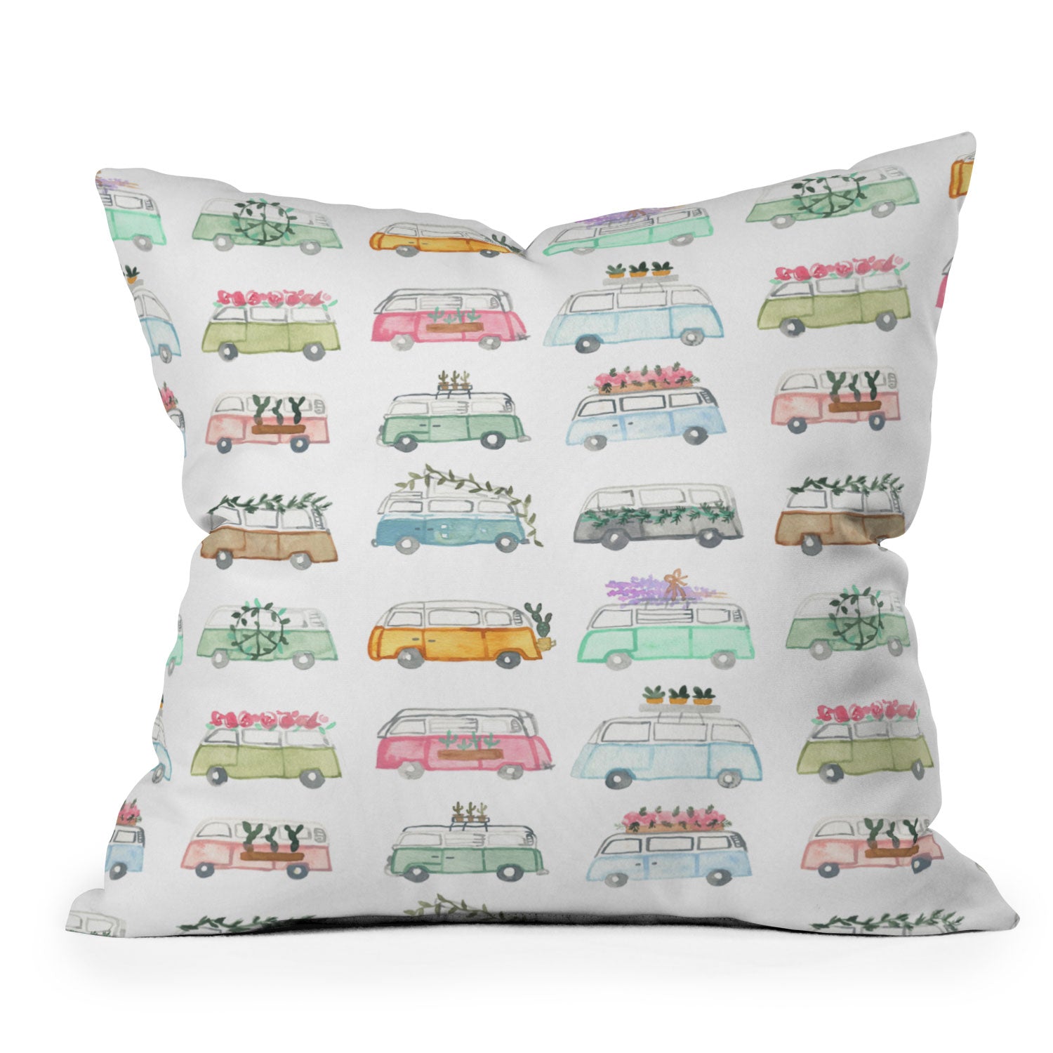 Dash and Ash Buses and Plants Throw Pillow