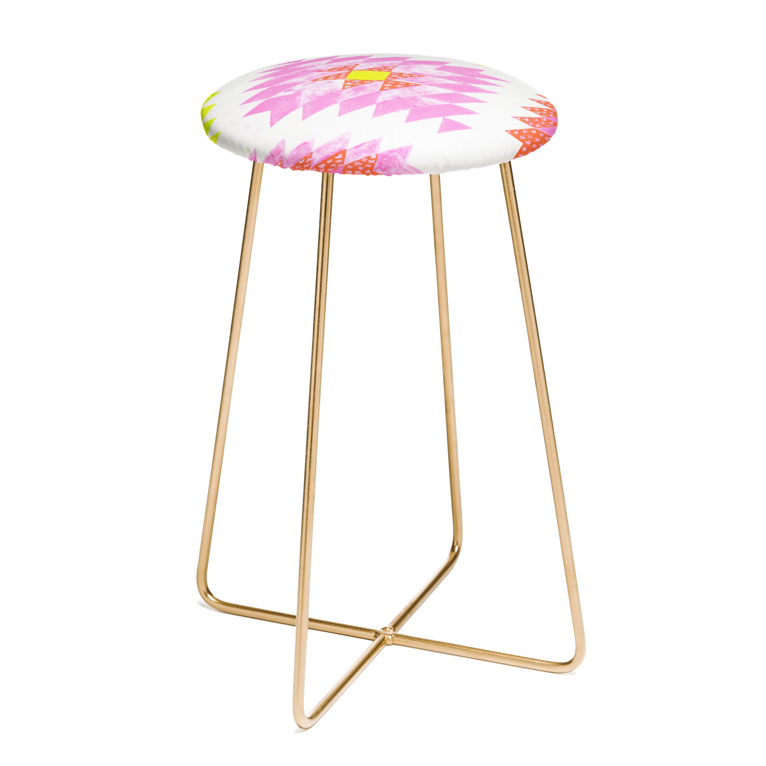 Saddle up, (little) partner. The Deny Designs counter stool uses all the space-conscious, design-forward styling of the bar stool, but with a slightly shorter frame. Sleek, gently curved steel aston legs (available in black or gold) combine with the faux-leather upholstery for a modern yet unassuming stool. Select from our curated array of designs to match whatever your taste may be. And the best part? Every purchase pays the artist who designed it—supporting creativity worldwide.