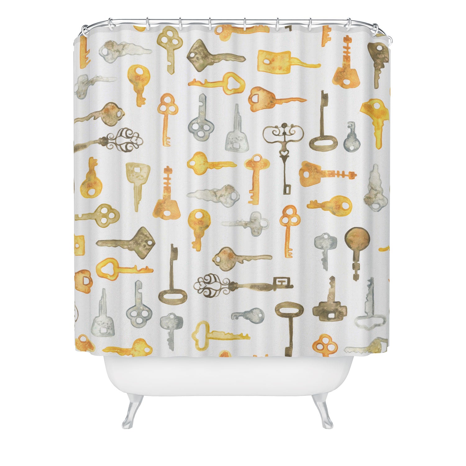 Set the stage. The Deny Designs shower curtain is crafted from 100% woven polyester and makes the perfect backdrop for whatever your bathroom decor may be. Adding some design to your shower curtains is a great way to make a statement in a room known for presenting plenty of design challenges. The buttonhole openings along the top means that you're free to use any curtain rings or hooks you please. And the best part? Every purchase pays the artist who designed it—supporting creativity worldwide.