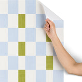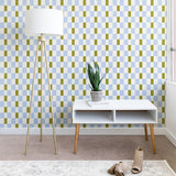 De Koro checkered blue and chartreuse Wallpaper