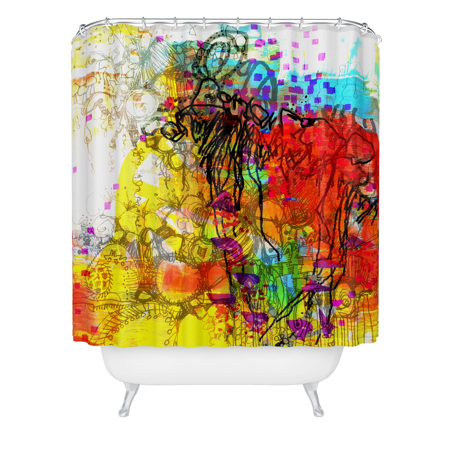 Set the stage. The Deny Designs shower curtain is crafted from 100% woven polyester and makes the perfect backdrop for whatever your bathroom decor may be. Adding some design to your shower curtains is a great way to make a statement in a room known for presenting plenty of design challenges. The buttonhole openings along the top means that you're free to use any curtain rings or hooks you please. And the best part? Every purchase pays the artist who designed it—supporting creativity worldwide.