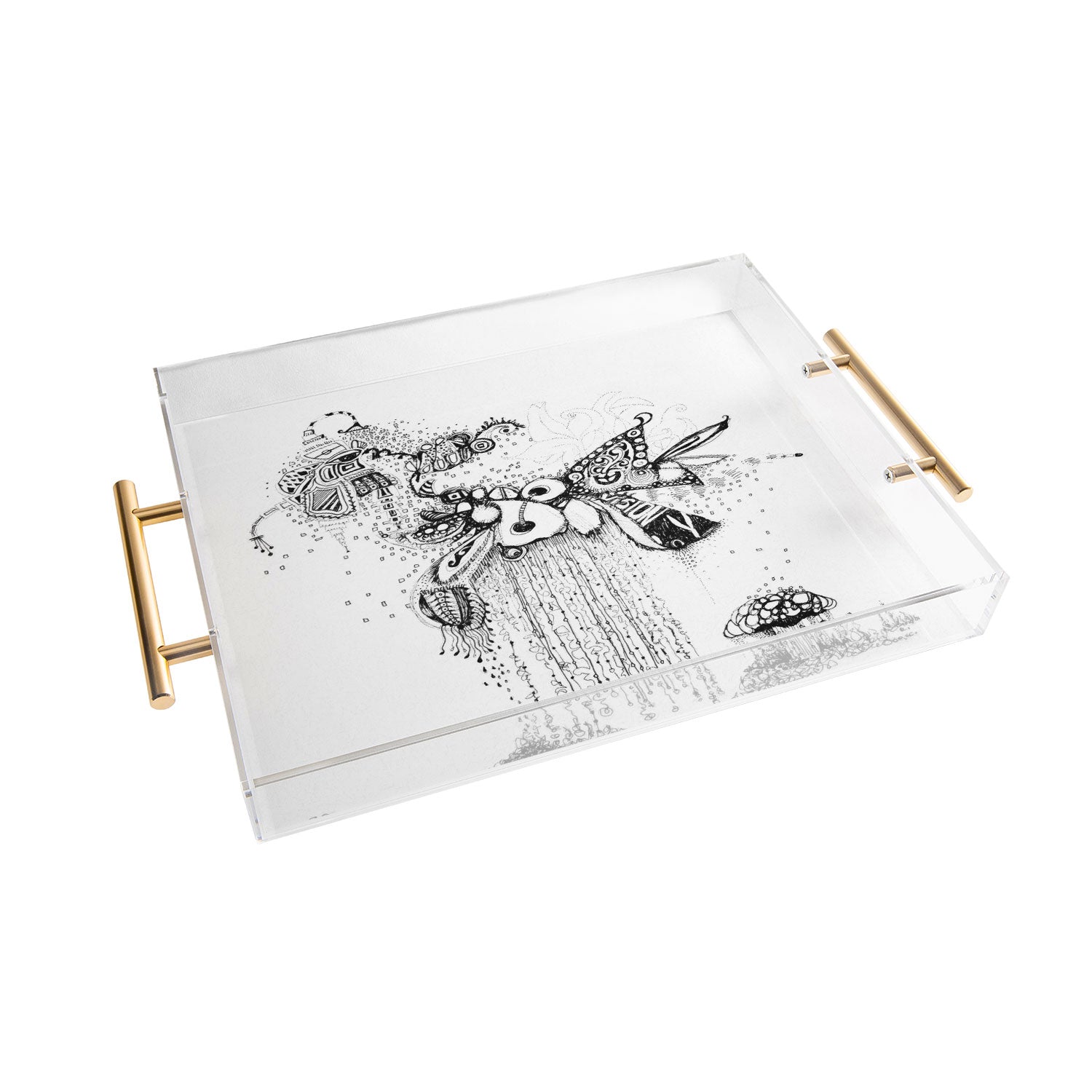 Tray chic. The Deny Designs acrylic trays come in a small and medium-size to accommodate all your countertop organizational needs. Featuring designs from our curated selection on the bottom panel, the acrylic trays can adapt to whatever decor style you love and the see-through side panels give them a modern flair. The medium-sized tray even comes with handles, allowing you to take it around the house for nail supplies or, dare we say, breakfast in bed! And the best part? Every purchase pays the artist who designed it—supporting creativity worldwide.