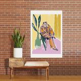 DESIGN dannick Woman wearing yellow pajamas Art Print