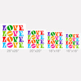 Dominique Vari Words Rainbow LOVE Groovy Repeat Outdoor Throw Pillow