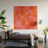 Dominique Vari Words Tropical Jungle Pattern Orange Wood Wall Mural