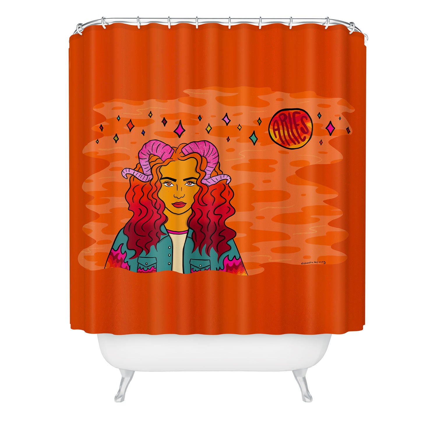 Set the stage. The Deny Designs shower curtain is crafted from 100% woven polyester and makes the perfect backdrop for whatever your bathroom decor may be. Adding some design to your shower curtains is a great way to make a statement in a room known for presenting plenty of design challenges. The buttonhole openings along the top means that you're free to use any curtain rings or hooks you please. And the best part? Every purchase pays the artist who designed it—supporting creativity worldwide.