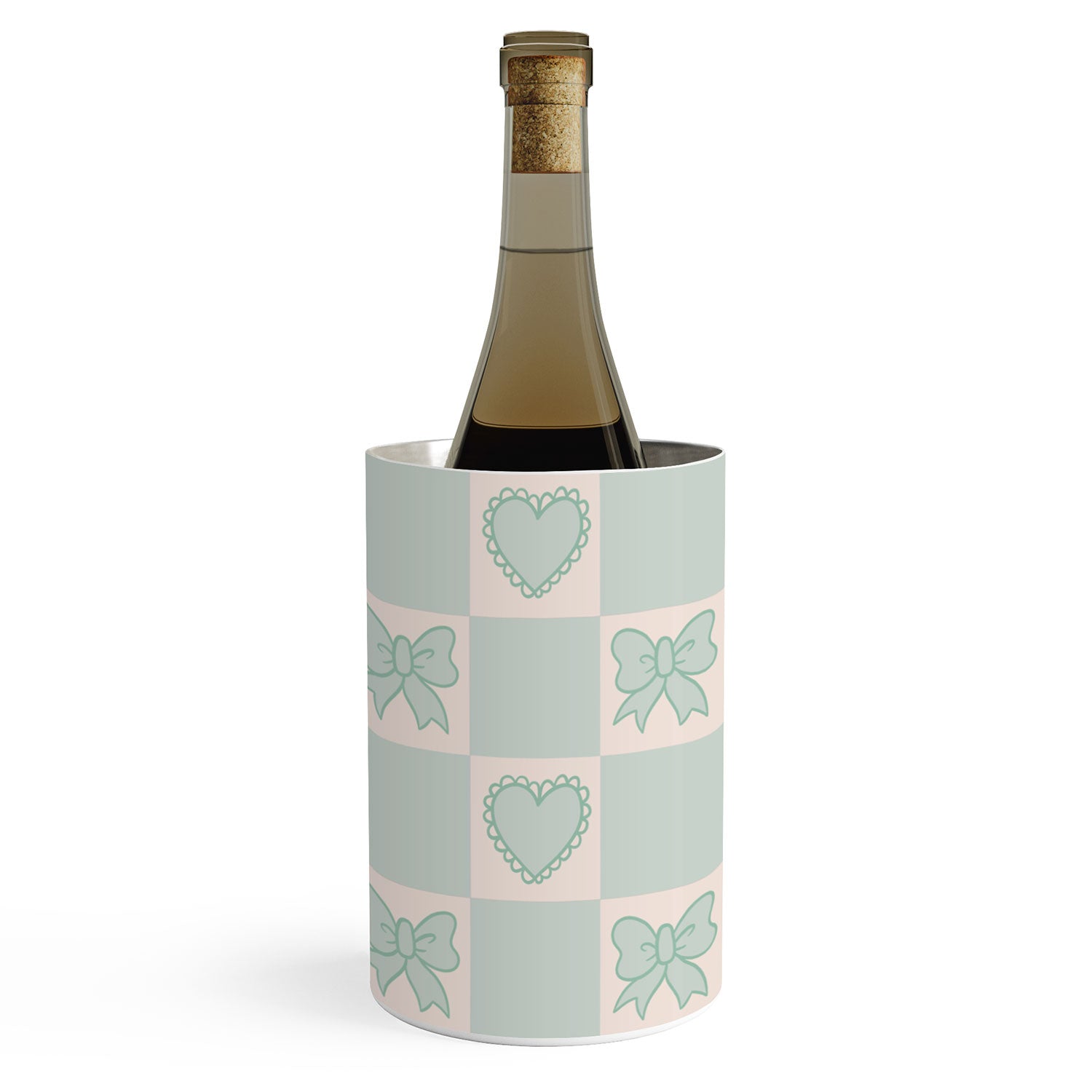 Doodle By Meg Blue Bow Checkered Print Wine Chiller