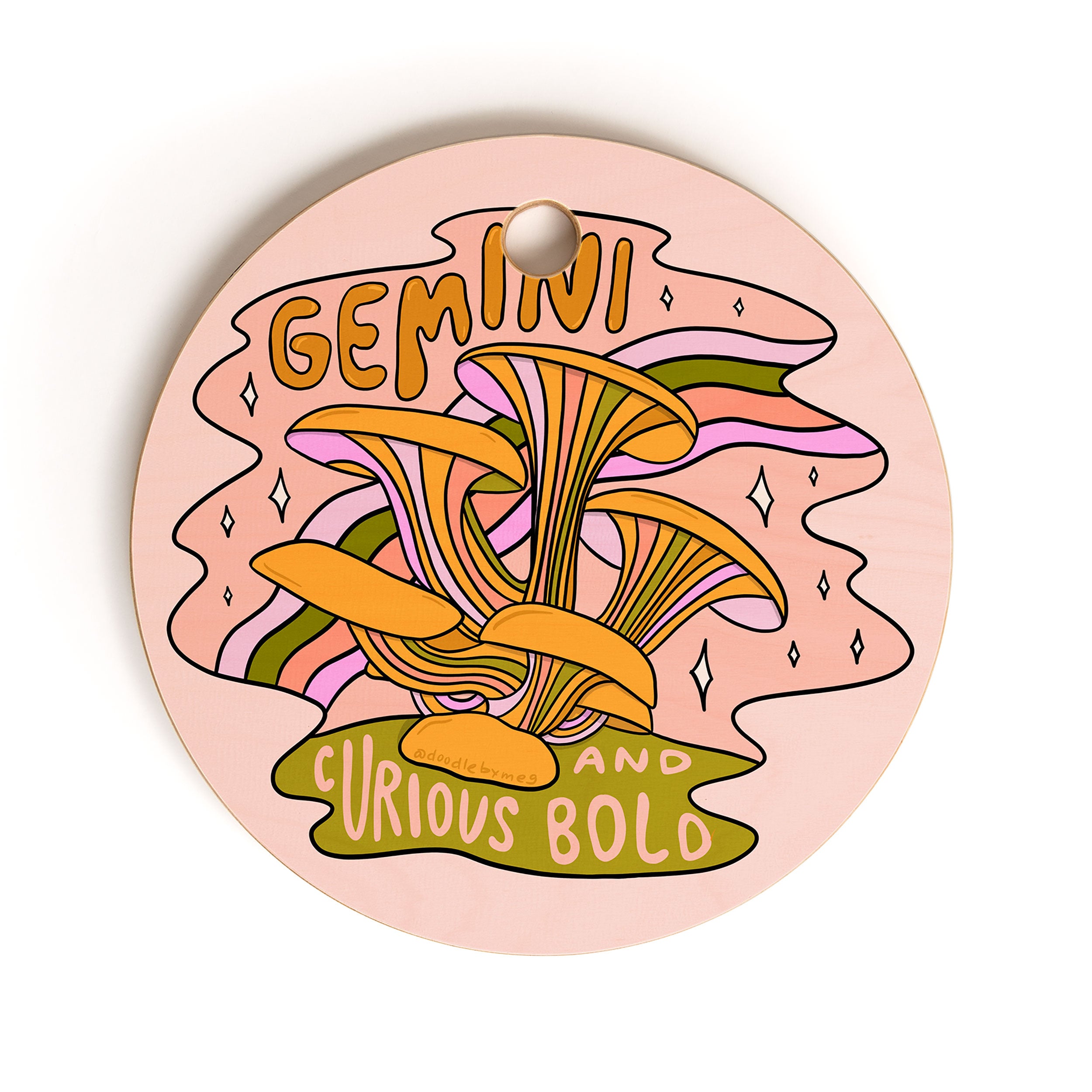 Doodle By Meg Gemini Mushroom Cutting Board Round