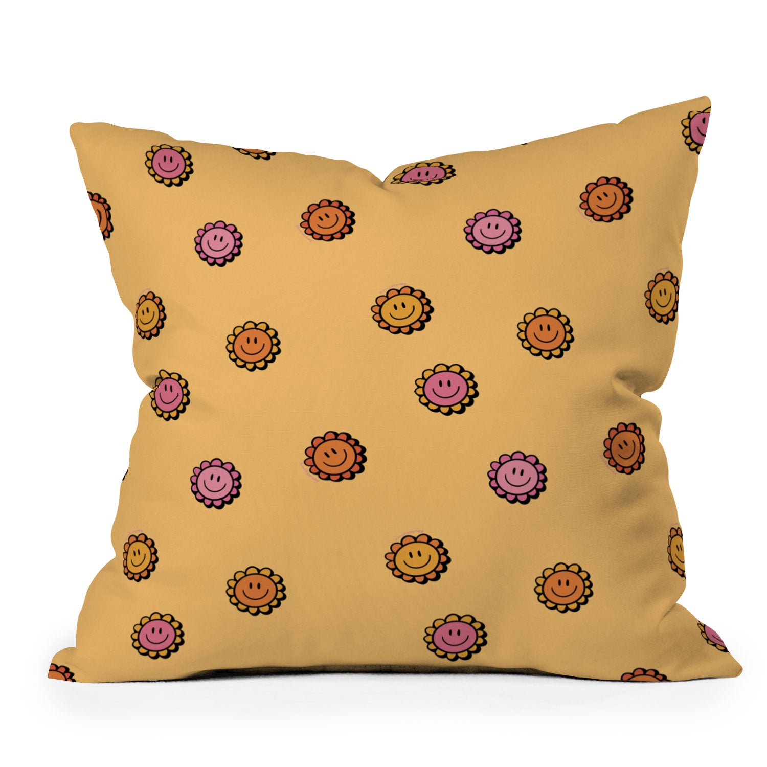 Doodle By Meg Happy Flower Print in Yellow Throw Pillow