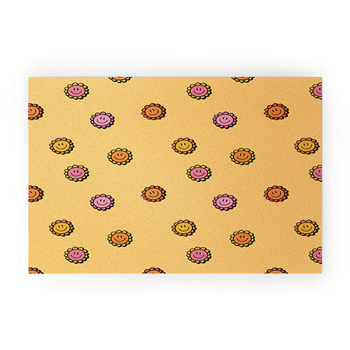 Doodle By Meg Happy Flower Print in Yellow Welcome Mat
