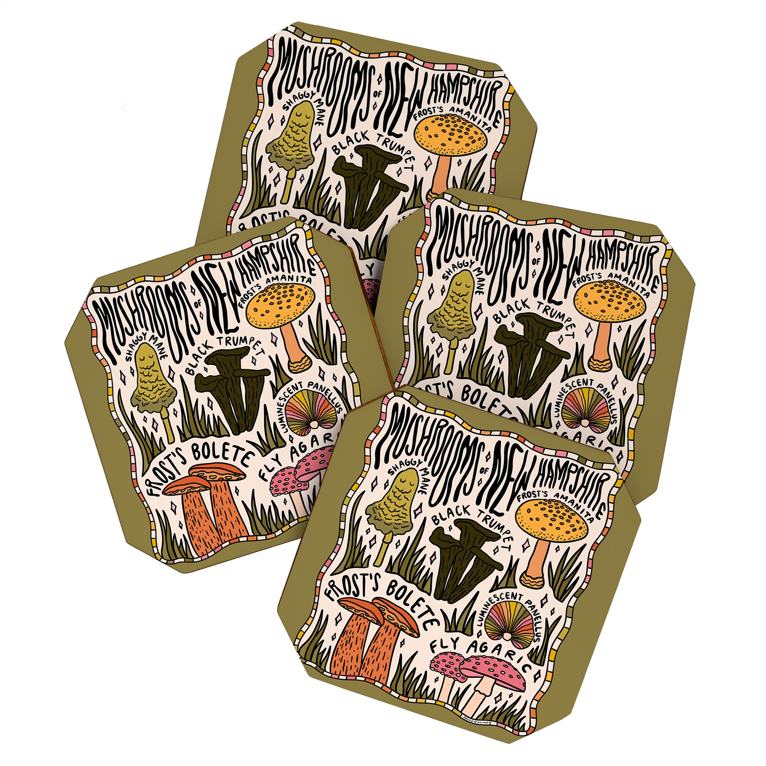 Doodle By Meg Mushrooms of New Hampshire Coaster Set