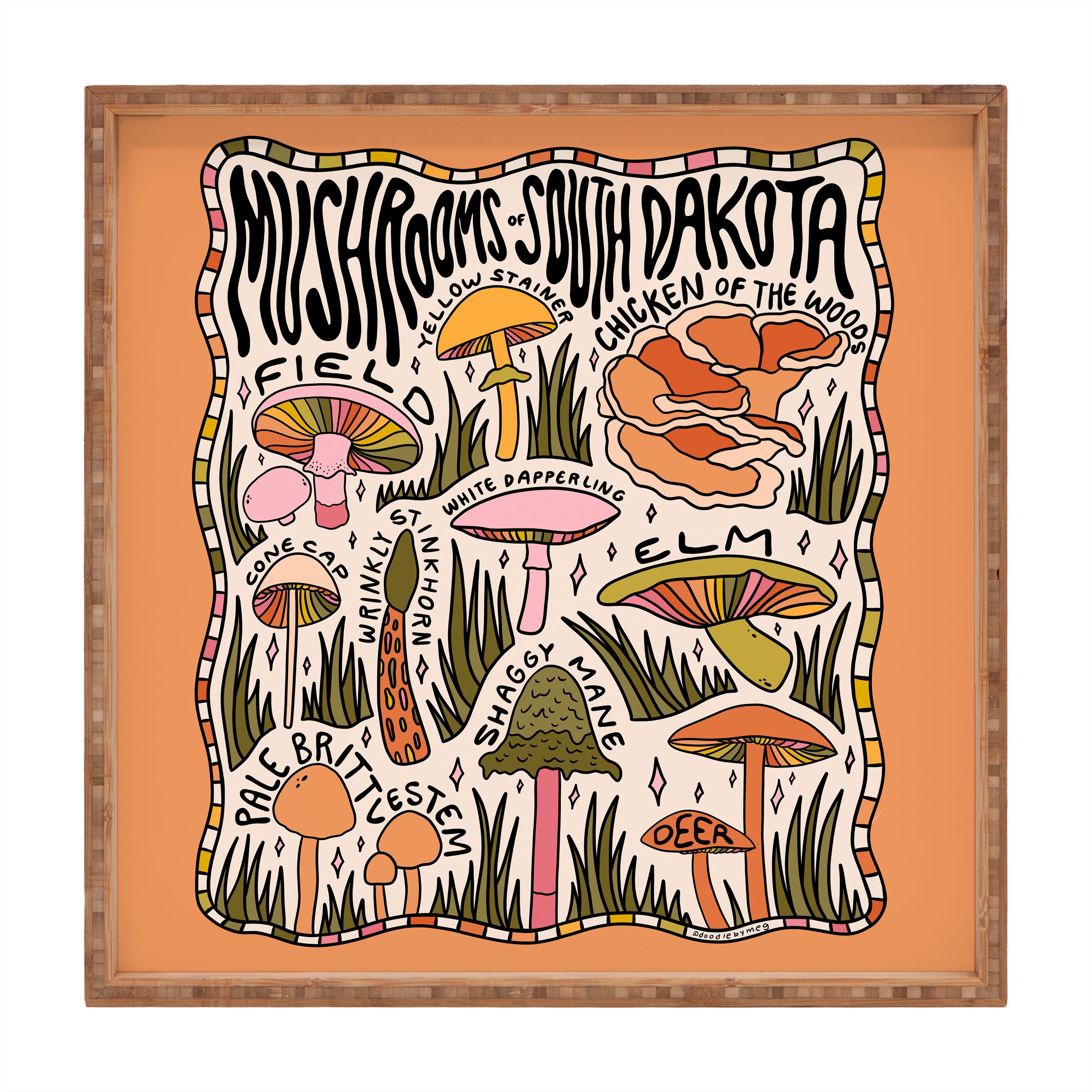 Doodle By Meg Mushrooms of South Dakota Square Tray