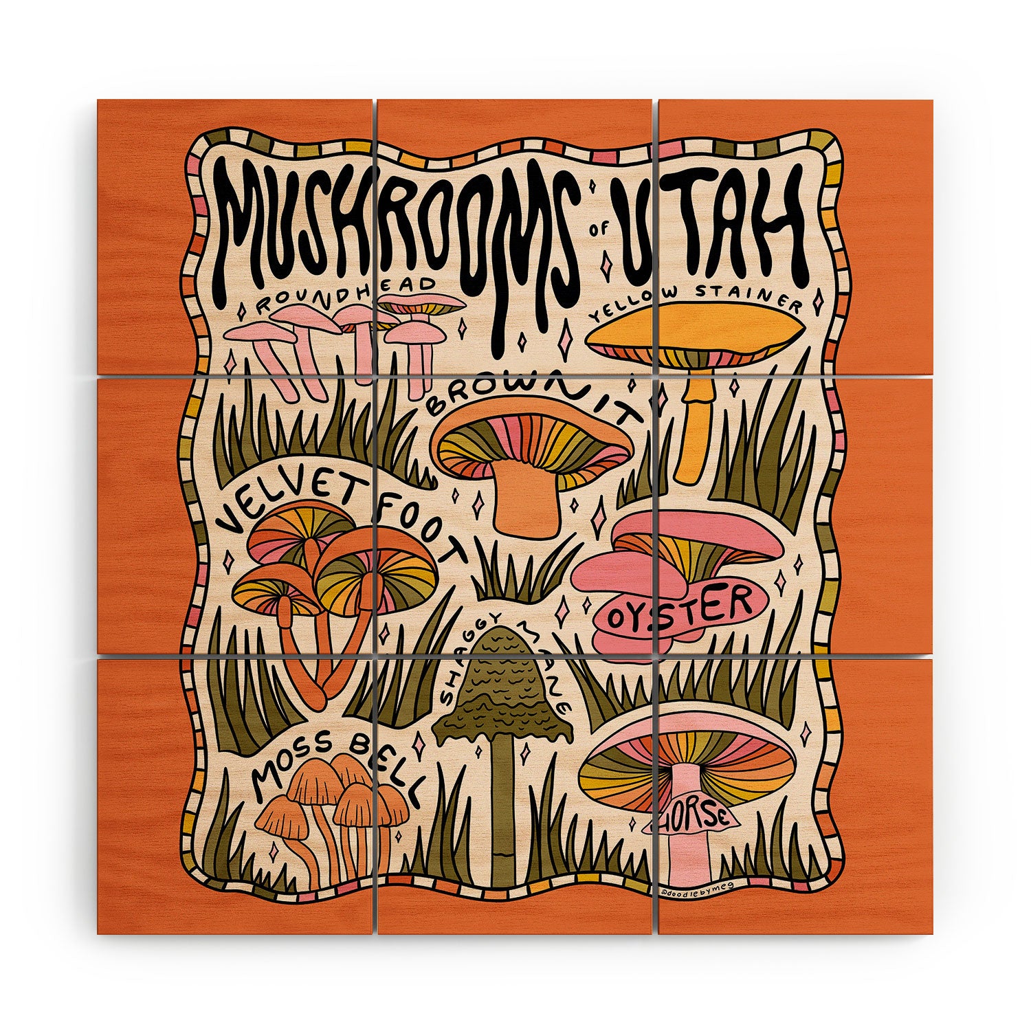Doodle By Meg Mushrooms of Utah Wood Wall Mural