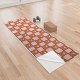 Doodle By Meg Orange Yin yang Checkered Print Yoga Towel
