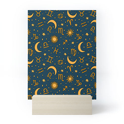 Doodle By Meg Zodiac Sun Star Print Navy Mini Art Print