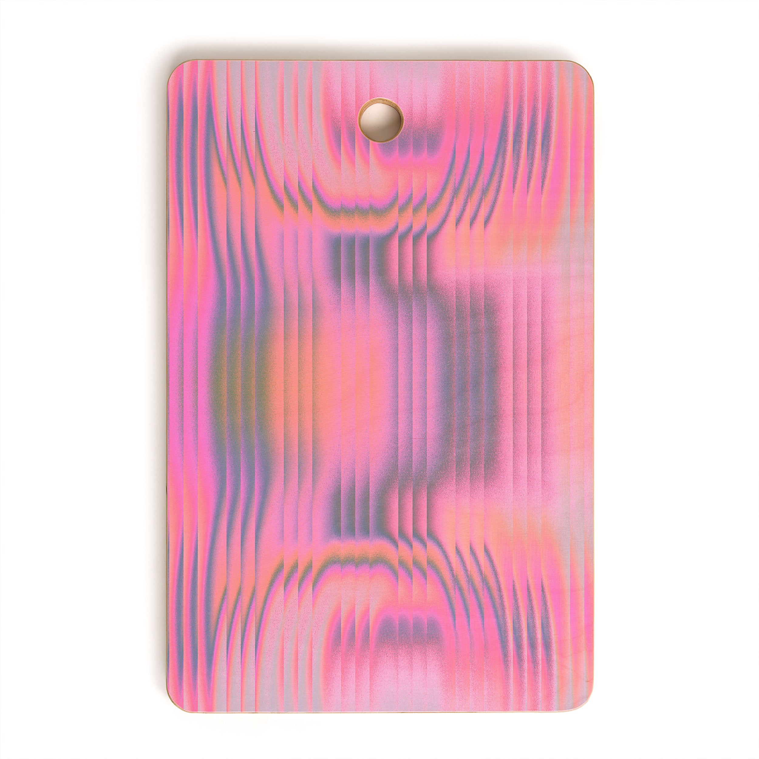 A must-have kitchen accessory any way you slice it. The Deny Designs cutting board is made from bamboo wood that won't look too heavy when integrated into your kitchen decor. Available in array of curated designs, the display side is printed with a satin finish that will pop when displayed on your counter or hung on the wall through the 1" handle. The prep side is a bamboo woodgrain that can be easily washed with a non-abrasive cloth. And the best part? Every purchase pays the artist who designed it—supporting creativity worldwide.