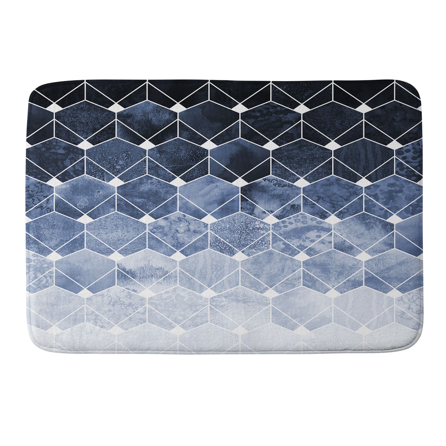 Elisabeth Fredriksson Blue Hexagons And Diamonds Memory Foam Bath Mat