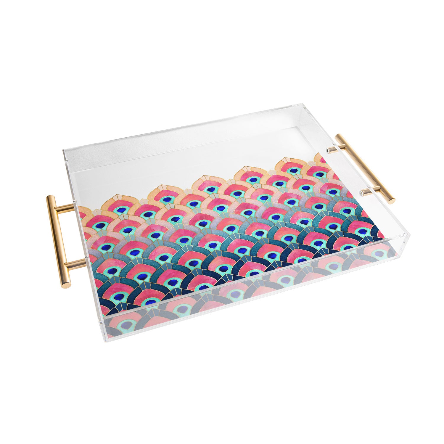 Tray chic. The Deny Designs acrylic trays come in a small and medium-size to accommodate all your countertop organizational needs. Featuring designs from our curated selection on the bottom panel, the acrylic trays can adapt to whatever decor style you love and the see-through side panels give them a modern flair. The medium-sized tray even comes with handles, allowing you to take it around the house for nail supplies or, dare we say, breakfast in bed! And the best part? Every purchase pays the artist who designed it—supporting creativity worldwide.