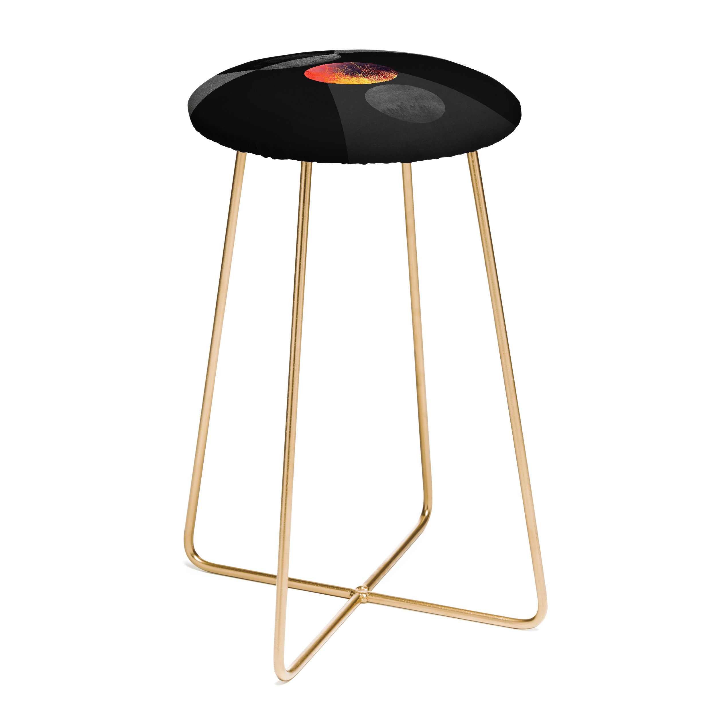 Saddle up, (little) partner. The Deny Designs counter stool uses all the space-conscious, design-forward styling of the bar stool, but with a slightly shorter frame. Sleek, gently curved steel aston legs (available in black or gold) combine with the faux-leather upholstery for a modern yet unassuming stool. Select from our curated array of designs to match whatever your taste may be. And the best part? Every purchase pays the artist who designed it—supporting creativity worldwide.