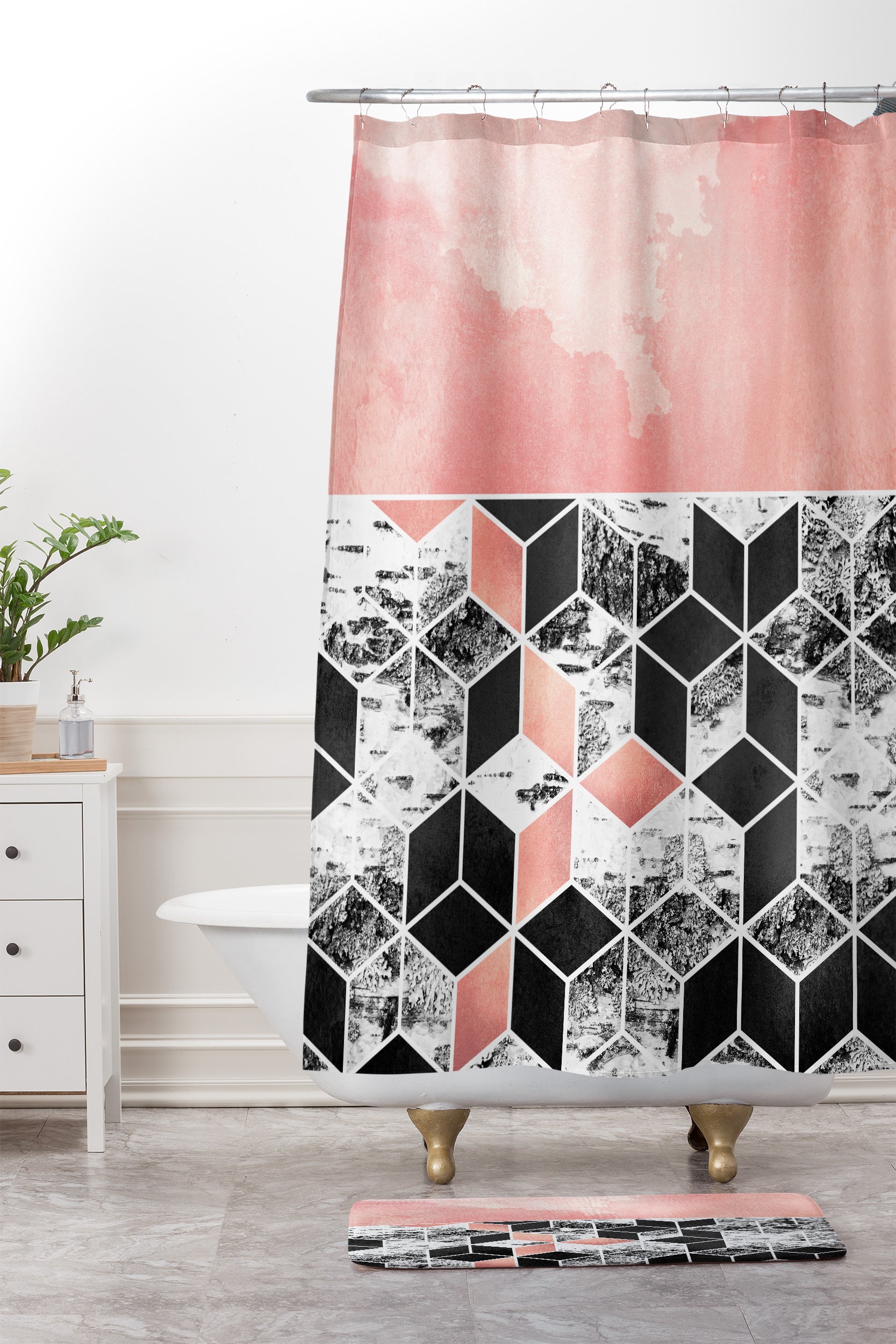 Elisabeth Fredriksson Rose Clouds And Birch Shower Curtain And Mat