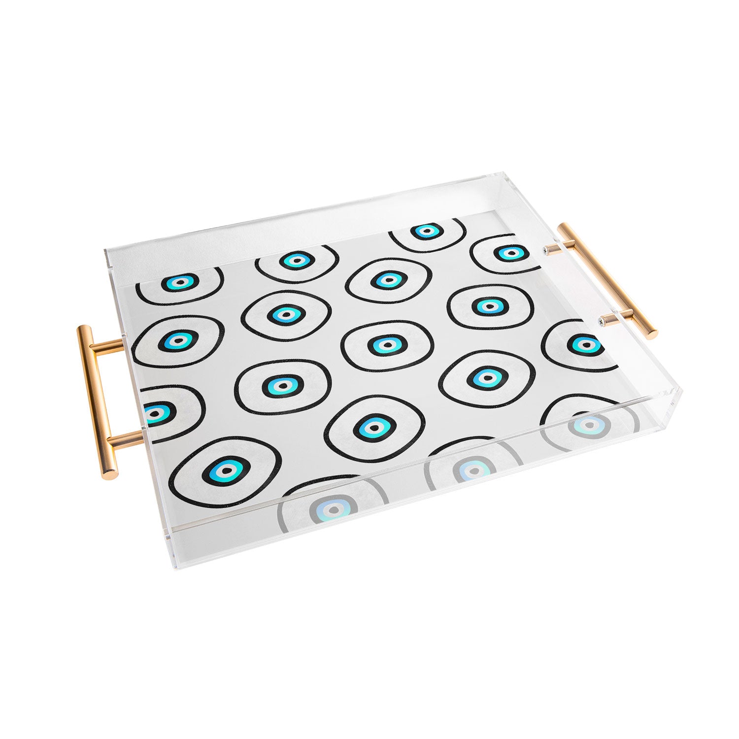 Tray chic. The Deny Designs acrylic trays come in a small and medium-size to accommodate all your countertop organizational needs. Featuring designs from our curated selection on the bottom panel, the acrylic trays can adapt to whatever decor style you love and the see-through side panels give them a modern flair. The medium-sized tray even comes with handles, allowing you to take it around the house for nail supplies or, dare we say, breakfast in bed! And the best part? Every purchase pays the artist who designed it—supporting creativity worldwide.