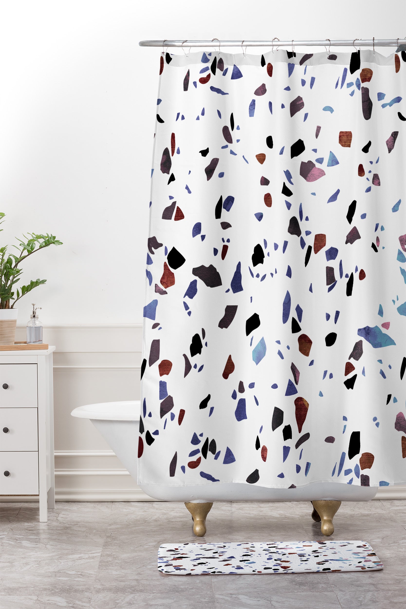 Emanuela Carratoni Autumnal Terrazzo Texture Shower Curtain And Mat