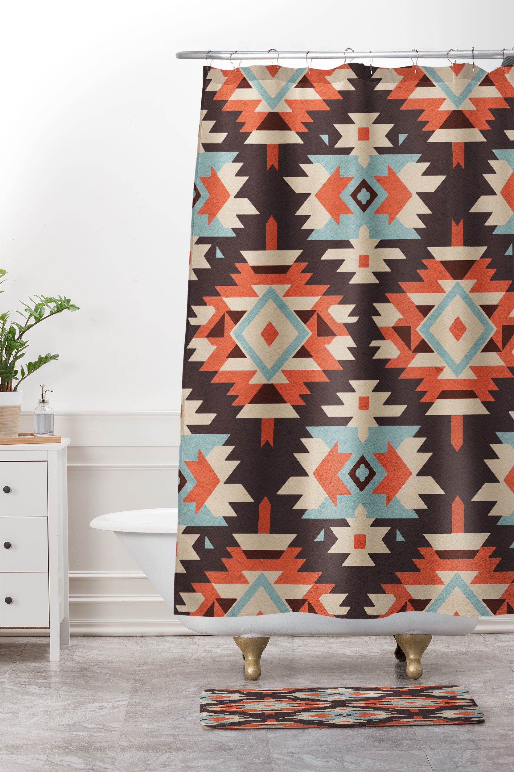 Emanuela Carratoni Boho Ikat Shower Curtain And Mat