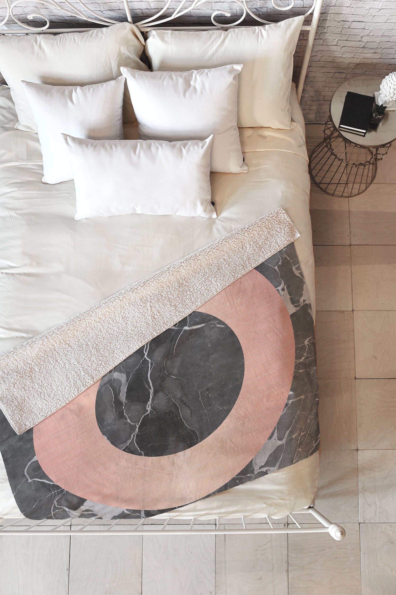 Emanuela Carratoni Grey Marble with a Pink Circle Fleece Throw Blanket