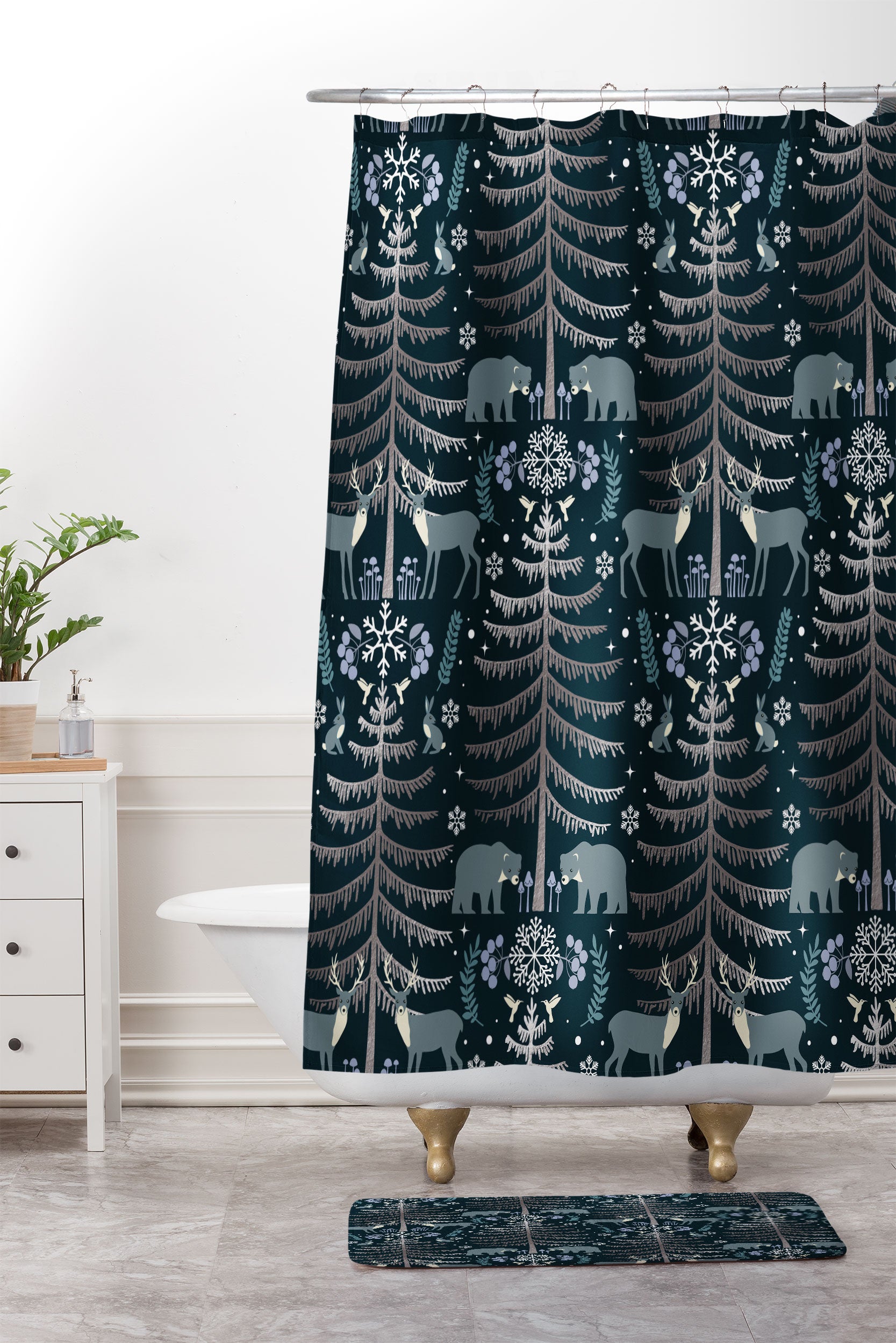 Emanuela Carratoni Moon Winter Forest Shower Curtain And Mat