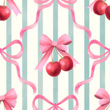Emanuela Carratoni Preppy Bows and Cherries Shower Curtain