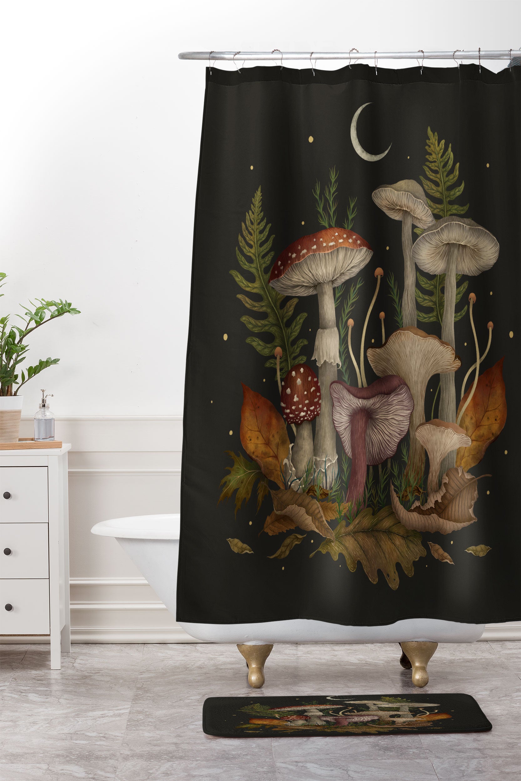 episodic drawing Autumn Mushrooms Shower Curtain And Mat