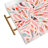 evamatise Abstract Boho Bamboo Leaves Colorful Tribal Pattern Acrylic Tray