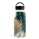 evamatise Gold and Green Palm Leaves Water Bottle