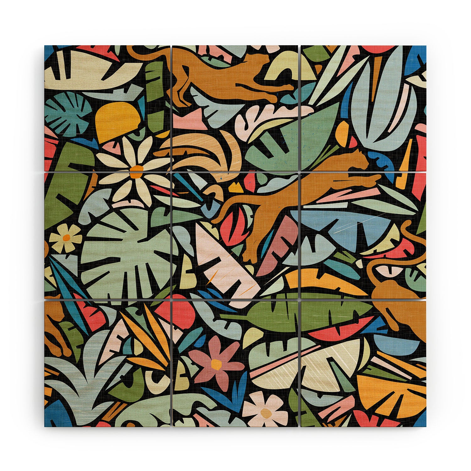 evamatise Joyful Jungle Maximalist Mode Wood Wall Mural