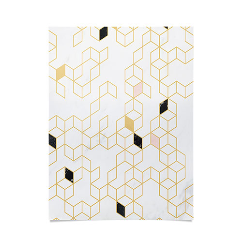 Florent Bodart Gold and Marble Keziah Scandinavian Pattern Poster
