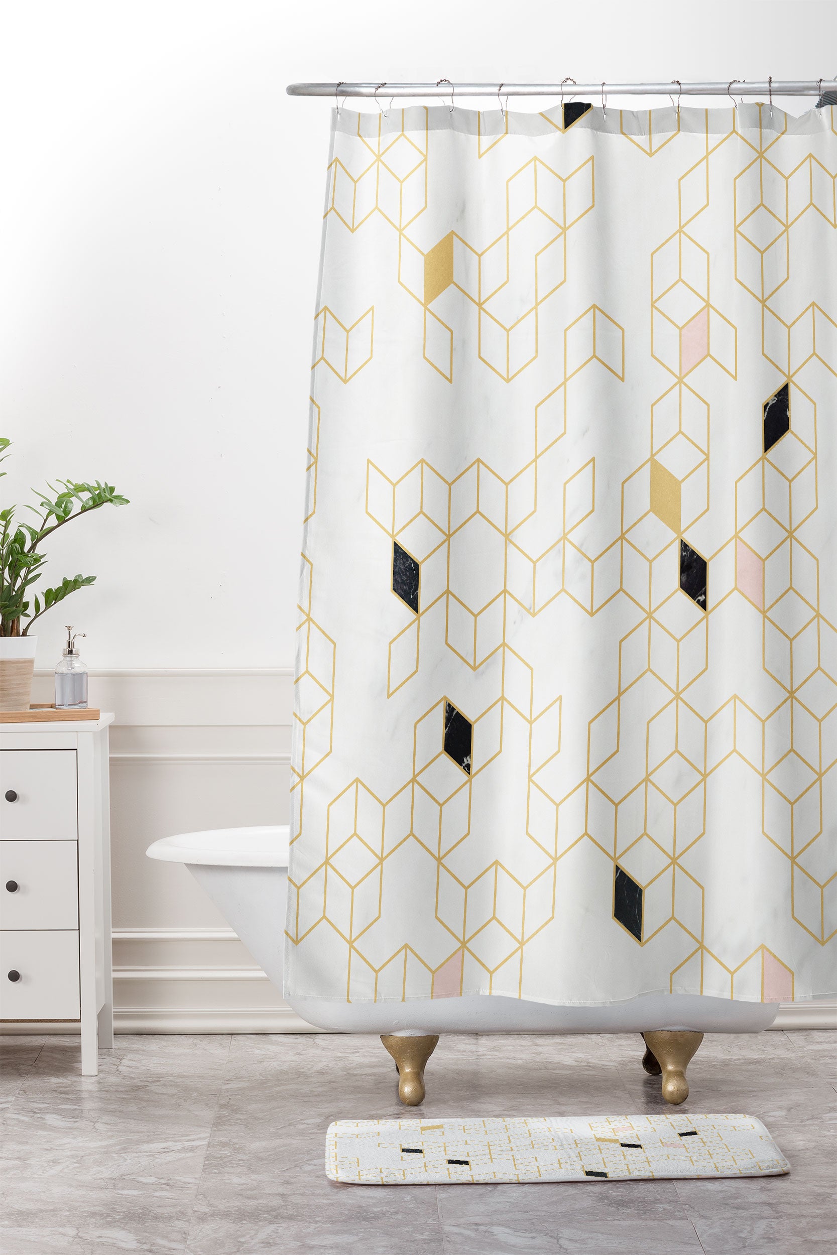 Florent Bodart Gold and Marble Keziah Scandinavian Pattern Shower Curtain And Mat