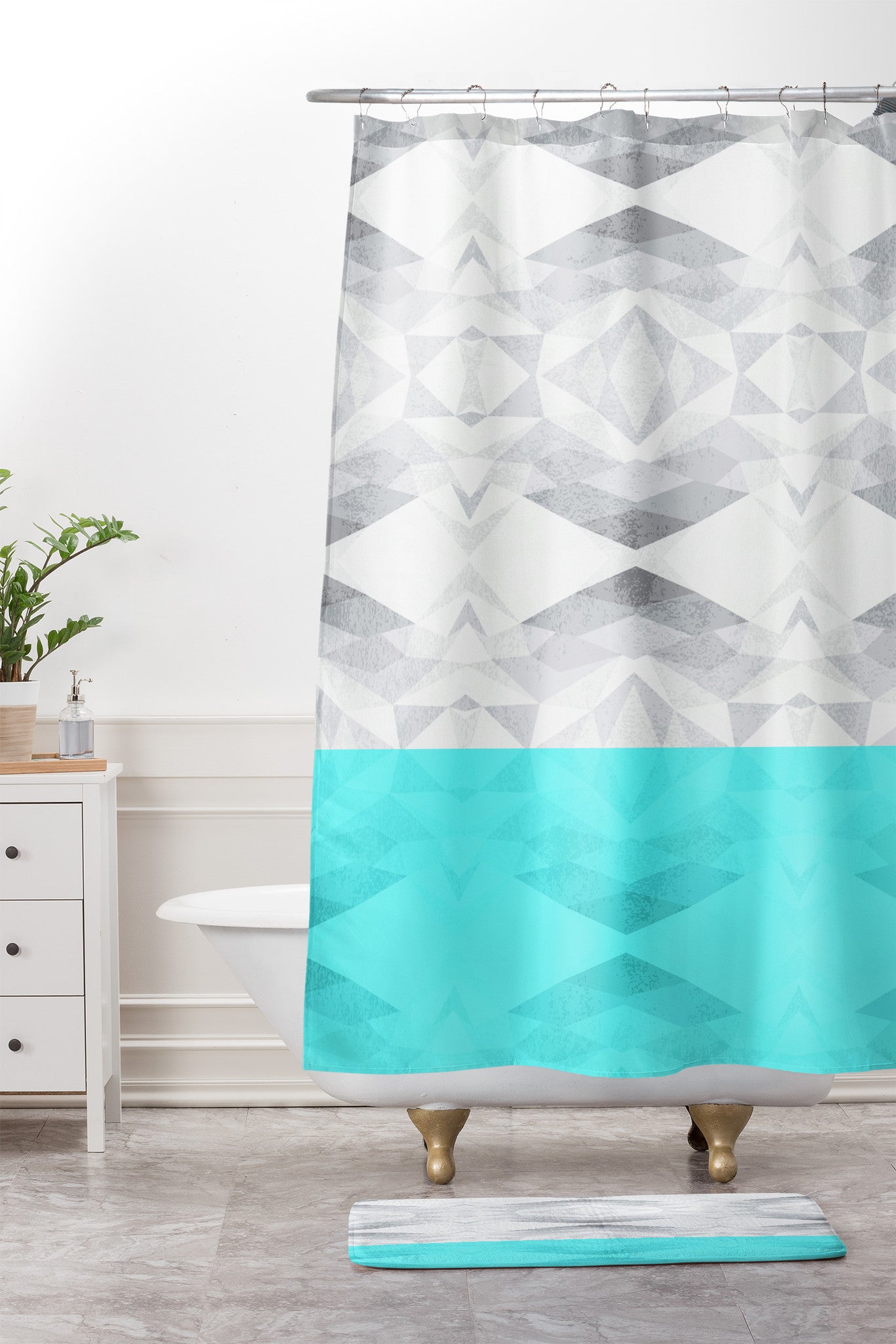 Gabi Lattice Aqua Shower Curtain And Mat