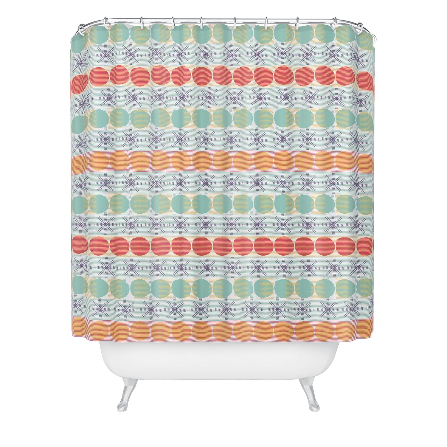 Set the stage. The Deny Designs shower curtain is crafted from 100% woven polyester and makes the perfect backdrop for whatever your bathroom decor may be. Adding some design to your shower curtains is a great way to make a statement in a room known for presenting plenty of design challenges. The buttonhole openings along the top means that you're free to use any curtain rings or hooks you please. And the best part? Every purchase pays the artist who designed it—supporting creativity worldwide.