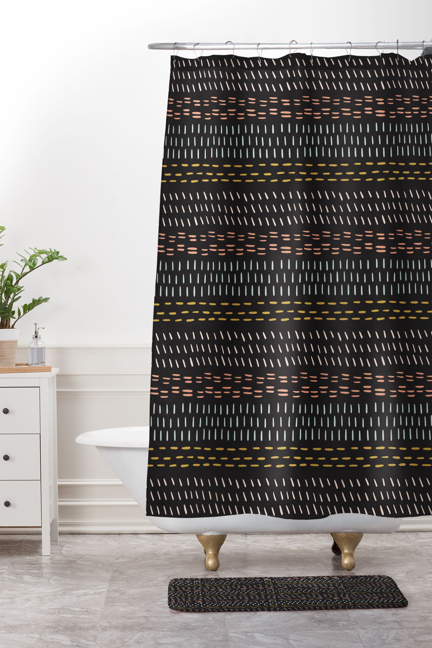 Gabriela Simon Boehmian Mudcloth Shower Curtain And Mat
