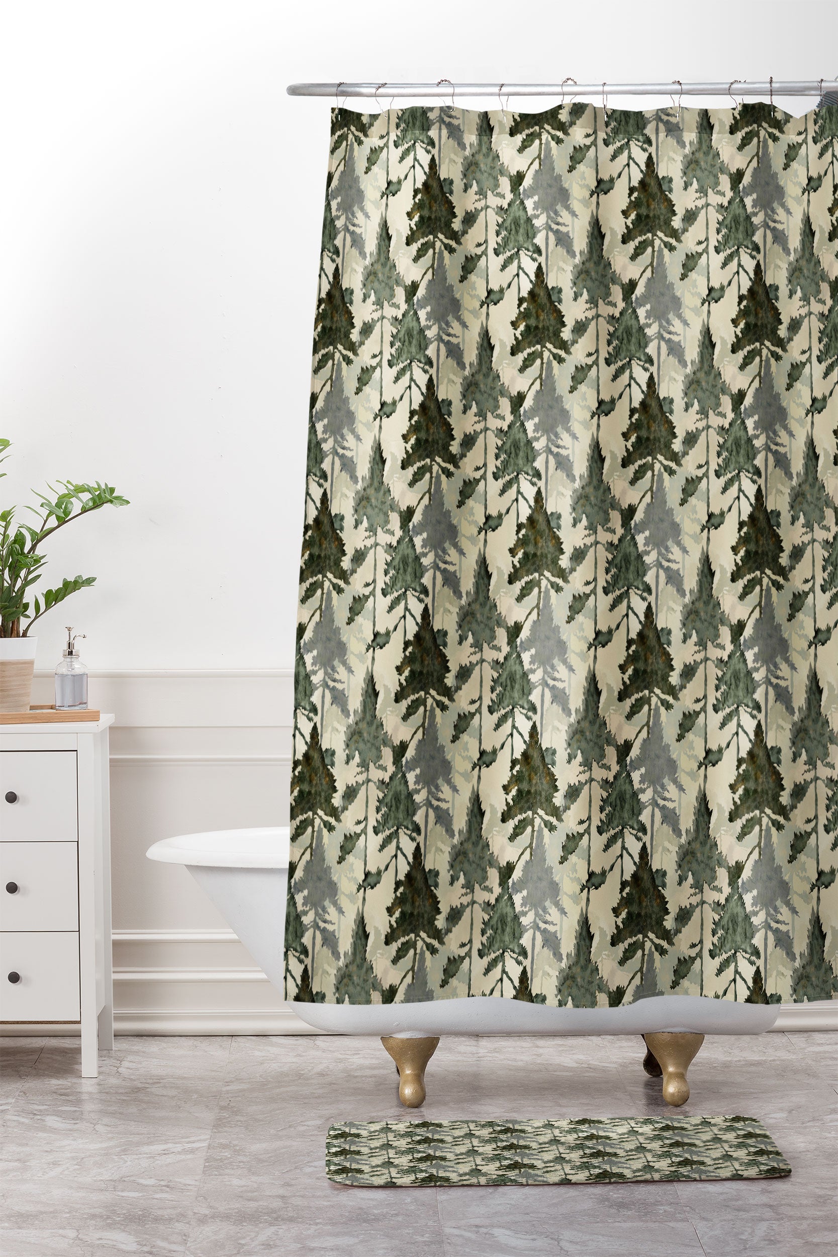 Gabriela Simon Enchanted Watercolor Pine Forest Shower Curtain And Mat