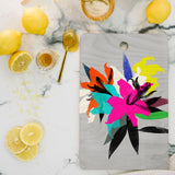 A must-have kitchen accessory any way you slice it. The Deny Designs cutting board is made from bamboo wood that won't look too heavy when integrated into your kitchen decor. Available in array of curated designs, the display side is printed with a satin finish that will pop when displayed on your counter or hung on the wall through the 1" handle. The prep side is a bamboo woodgrain that can be easily washed with a non-abrasive cloth. And the best part? Every purchase pays the artist who designed it—supporting creativity worldwide.
