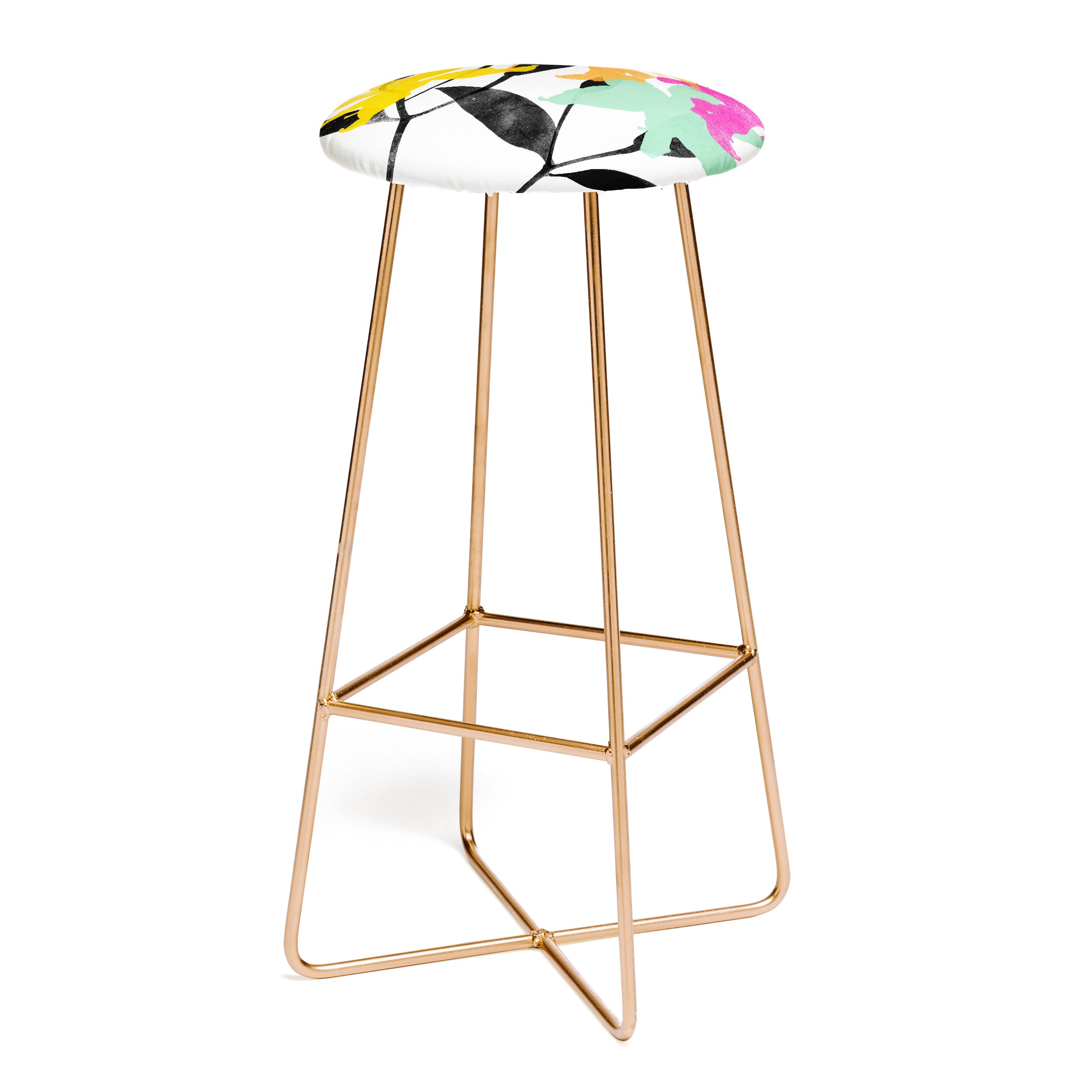 Saddle up, partner. The Deny Designs bar stool is the space-conscious and design-forward way to add seating to any space. Sleek, gently curved steel aston legs (available in black or gold) combine with the faux-leather upholstery for a modern yet unassuming stool. They feature a conveniently placed foot rest so your legs aren't left dangling, plus, you can select from our curated array of designs to match whatever your taste may be. And the best part? Every purchase pays the artist who designed it—supporting creativity worldwide.