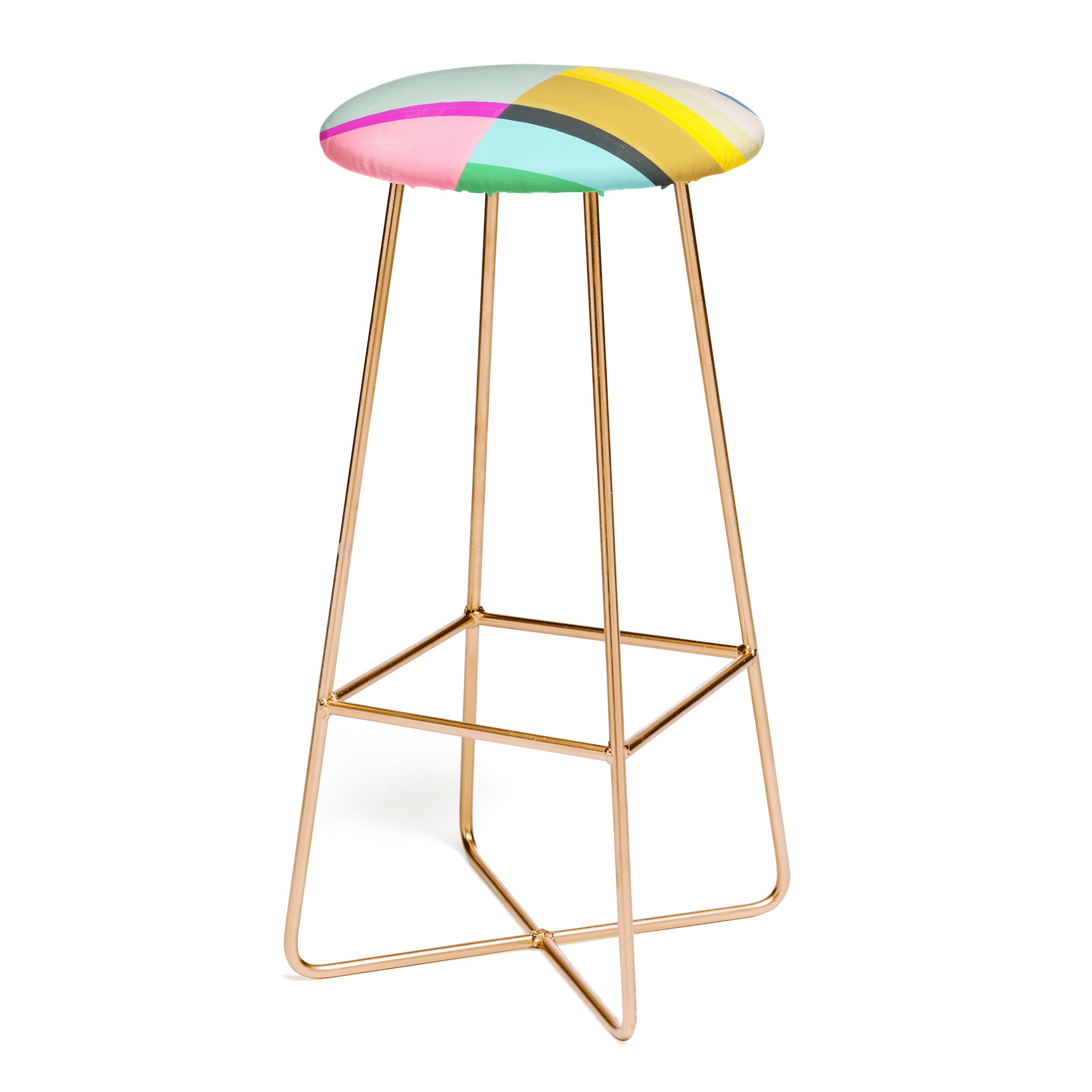 Saddle up, partner. The Deny Designs bar stool is the space-conscious and design-forward way to add seating to any space. Sleek, gently curved steel aston legs (available in black or gold) combine with the faux-leather upholstery for a modern yet unassuming stool. They feature a conveniently placed foot rest so your legs aren't left dangling, plus, you can select from our curated array of designs to match whatever your taste may be. And the best part? Every purchase pays the artist who designed it—supporting creativity worldwide.