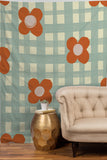 Gigi Rosado Blue and red floral check Tapestry