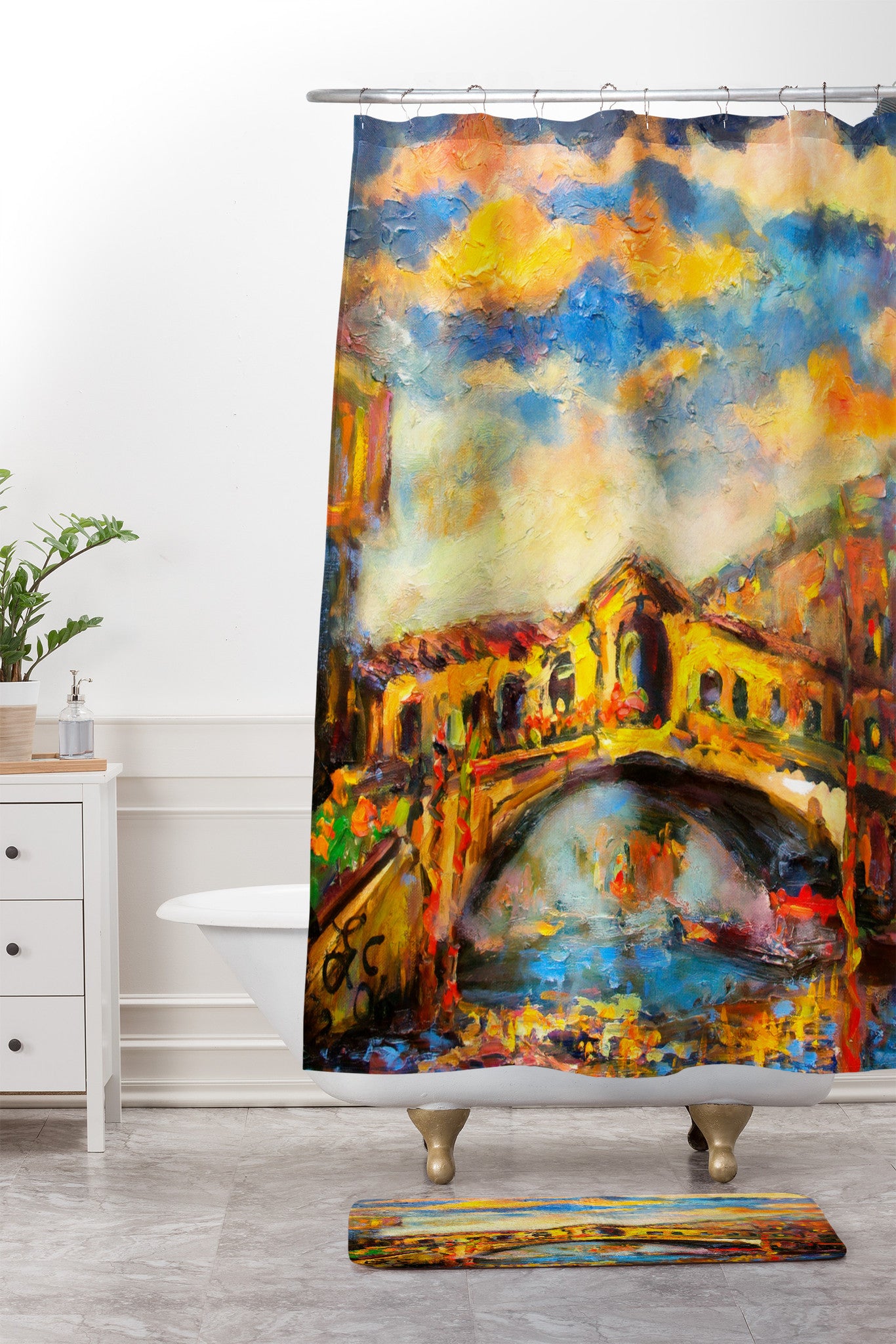 Ginette Fine Art 16 Railto Bridge Shower Curtain And Mat